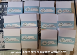 Each card is printed on premium heavyweight cardstock, precisely cut with a Cricut, paired with envelopes, and packaged by hand. They’re ready whenever you need them!